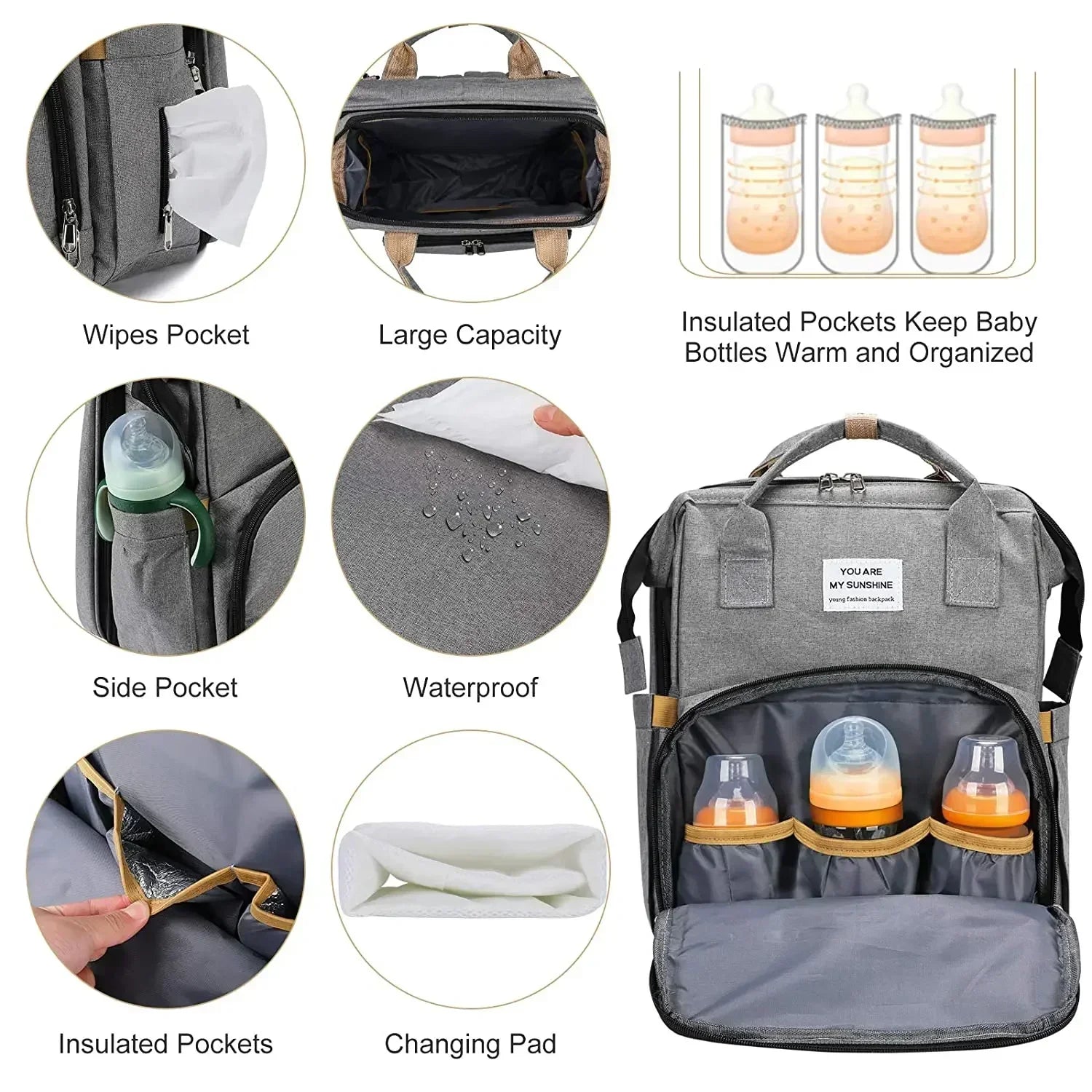 Uso 3-en-1: mochila cambiador, bolso de cochecito y cuna plegable