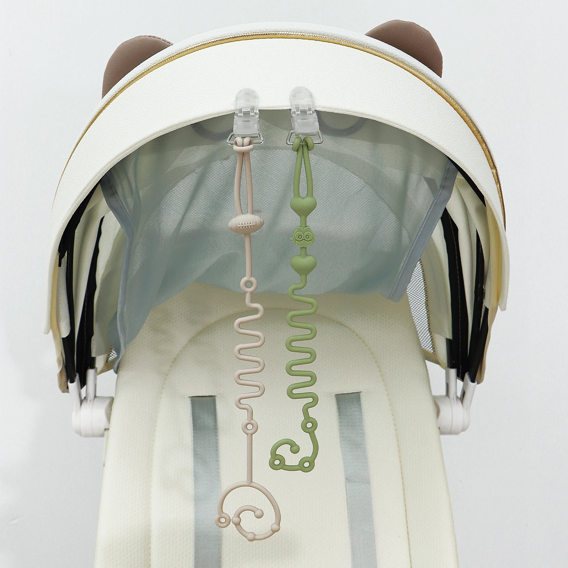 Correas ajustables de silicona para sujetar chupetes/juguetes a trona o cuna. Pack 4.