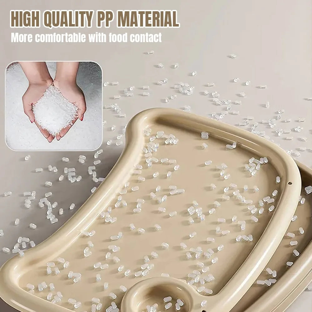 Trona y mecedora en un solo producto, con respaldo reclinable, altura regulable y bandejas dobles. Fabricada en acero y PP con cojín de PU fácil de limpiar. Compacta, plegable y con ruedas universales con freno para mayor comodidad.